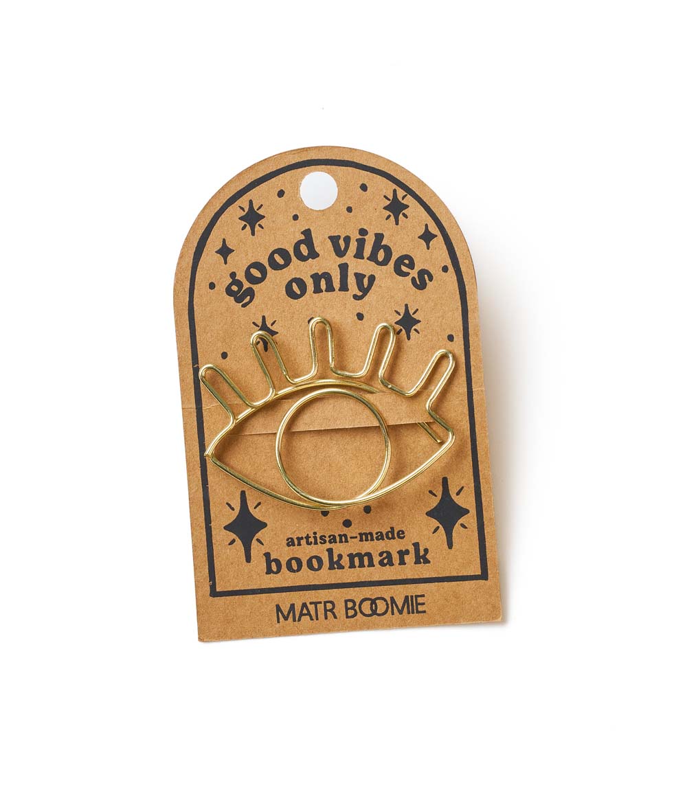 Keep the good vibes flowing‚ right between the pages. The Kitaab Evil Eye Wire Bookmark is shaped like the classic protective eye symbol and made from gold-tone wire for a sleek, modern look. It comes on a custom card that says, “Good vibes only,” making it a thoughtful little talisman for yourself or a friend who loves a bit of positive energy with their reading.