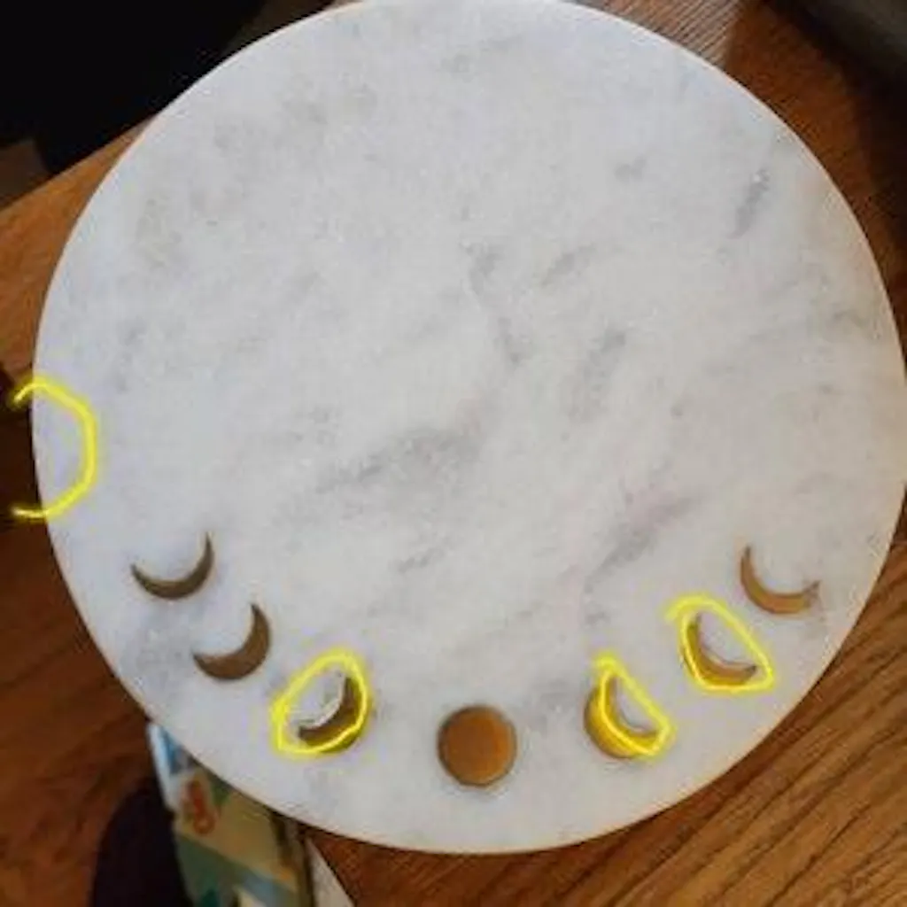 Enchant your guests the next time you host a party or gathering with this celestial, lunar moon phase themed cheese charcuterie serving board. Also great for serving hor d'oeuvres or mini desserts. Exclusively designed in Austin, TX and handmade with love by artisan makers in India, to bring you a one-of-a kind luxury for the home. Keep for yourself or give as a gift to a loved one for a housewarming, wedding, birthday or anniversary gift. Hand Wash. Shop our entire Indukala line for additional tabletop, hosting items and more!